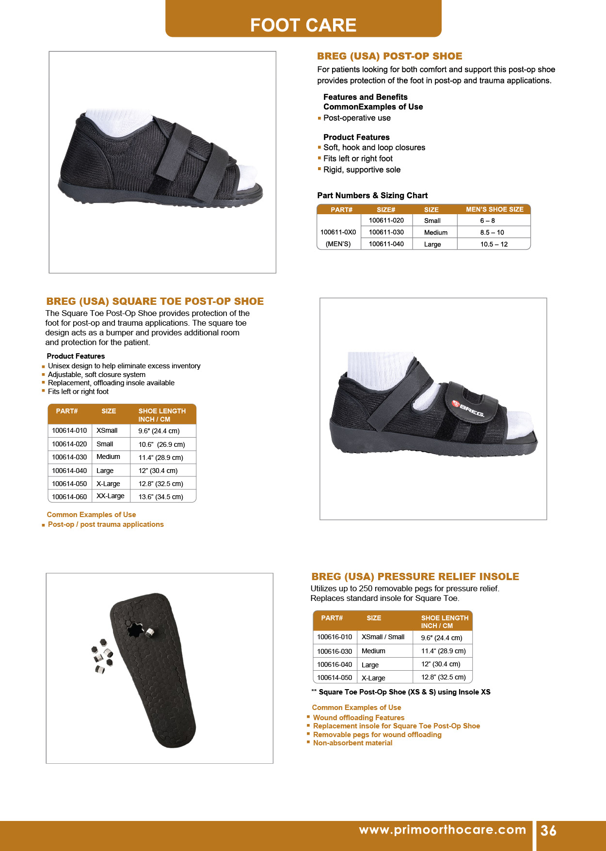 The Square Toe Post-Op Shoe provides protection of the foot for post-op and trauma applications. The square toe design acts as a bumper and provides additional room